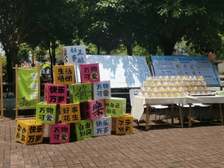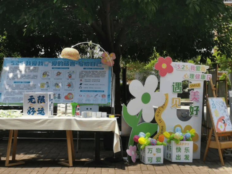 24日和25日下午,在学生社区心理驿站楼下,四叶草团队的互助员们精心布置了活动场地,小草们张贴了两块展板:一块用于宣传心理健康知识,另一块用于粘贴“爱的箴言”。