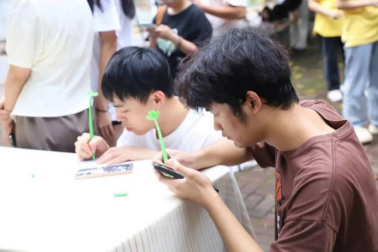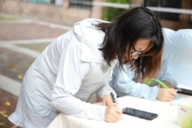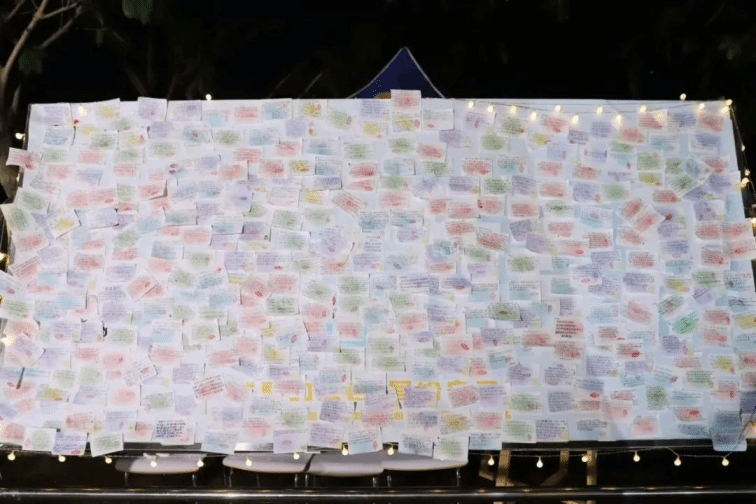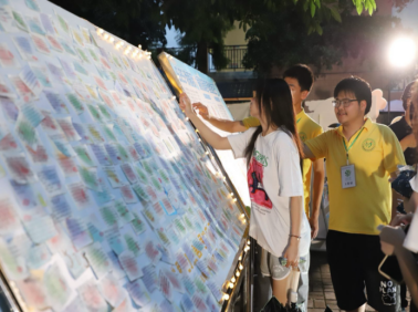 活动现场温馨而热烈,参加活动的同学纷纷驻足在心灵驿站楼下,他们有序领取活动便签纸,有的同学深思熟虑认真思考,有的同学则尽情挥洒才华写下真挚的话语,留学生们来到活动现场传递了国际学子的温暖与友善,还有敬爱的老师也用温柔的笔触写下如春风拂面的祝福。