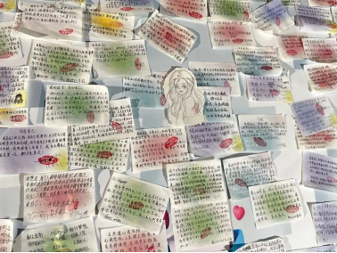 来自各二级学院的600余名同学和小草们一起为自己写下了“爱的箴言”,用一张张小小的便签纸汇成了一片大大的“爱自己”的海洋。