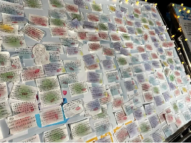 仅仅1个小时,展板就贴满了五颜六色的便签,一张张“爱的箴言”承载了同学们满满的真情,有与过去的和解,有对未来的期许,有坚定奋进的力量,也有传递的爱与温暖,小小便签述我心,大大力量集我身。