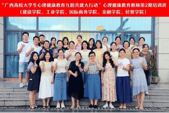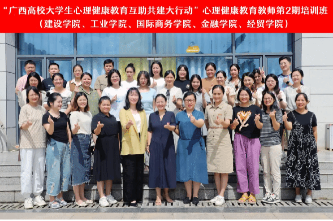 7月4日至5日,伟德国际官网组织开展组群高校“大学生心理健康教育互助共建大行动”第二期培训班。伟德国际官网与广西工业职业技术学院、广西国际商务职业技术学院、广西经贸职业技术学院、广西金融职业技术学院的心理专兼职教师30余人参加培训。