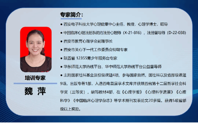 本次培训为期2天,在伟德国际官网心理中心101团体心理辅导室开展。伟德国际官网特邀西安电子科技大学心理健康中心主任、中国临床心理注册系统的注册心理师(X-21-816)、注册督导师(D-22-038)、西安市教育心理学会副理事长魏萍教授担任主讲,从“个案概念化和咨询记录规范书写”“严重心理创伤后的心理辅导”“极端危机事件后的哀伤辅导”及“个案团体督导”四个部分开展培训。