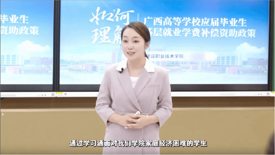刘晗蕾老师主讲的《如何理解广西高等学校应届毕业生基层就业学费补偿资助政策》,旨在让家庭经济困难的学生通过学习课程了解该政策的相关知识点,为同学们树立自立自强、知恩感恩的基层就业榜样,鼓励同学们到祖国最需要的地方建功立业。通过课程教学,同学们对广西高等学校应届毕业生基层就业学费补偿资助政策有了全面、深入、直观的了解,激发了家庭经济困难学生到基层就业的浓厚兴趣,达到了潜移默化的资助育人目标。