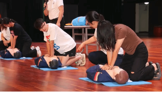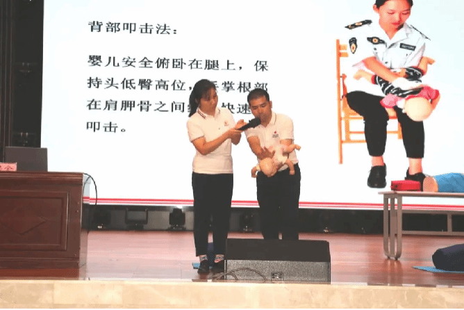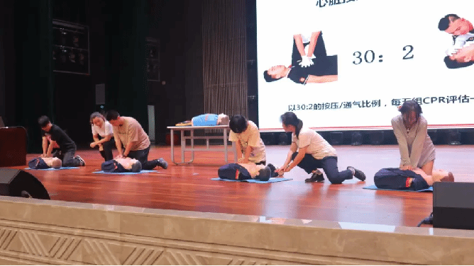海姆立克急救法、心肺复苏、自动体外除颤仪(AED)的使用作为关键的急救技能,是本期讲座的重点内容。红十字会救护培训师们通过模拟人教具、AED教学机等对海姆立克急救法、心肺复苏、除颤仪的使用进行了具体讲解和演示。重点强调了在遇到突发事件如何第一时间作出反应,如何抓住宝贵的急救“黄金4分钟”,以及在救助过程中的注意事项。