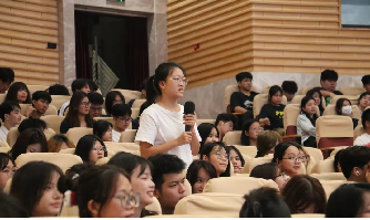 讲座中,同学们积极参与互动,纷纷上台亲自体验心肺复苏、自动体外除颤仪(AED)使用的操作过程,现场学习气氛热烈。活动最后,进行总结和答题互动环节,同学们纷纷举手回答,回答正确的同学得到红十字会老师赠送的急救包作为奖励。