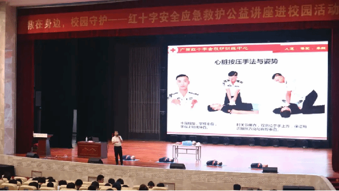 近日,“救在身边、校园守护”红十字安全应急救护公益讲座在伟德国际官网礼堂开讲。本期讲座由伟德国际官网学生工作部和广西红十字会救护训练中心共同主办,由学生社区安全协作中心承办。讲座由广西红十字会救护训练中心专业培训师梁金老师主讲,共有来自7个二级学院的797名学生代表参加。