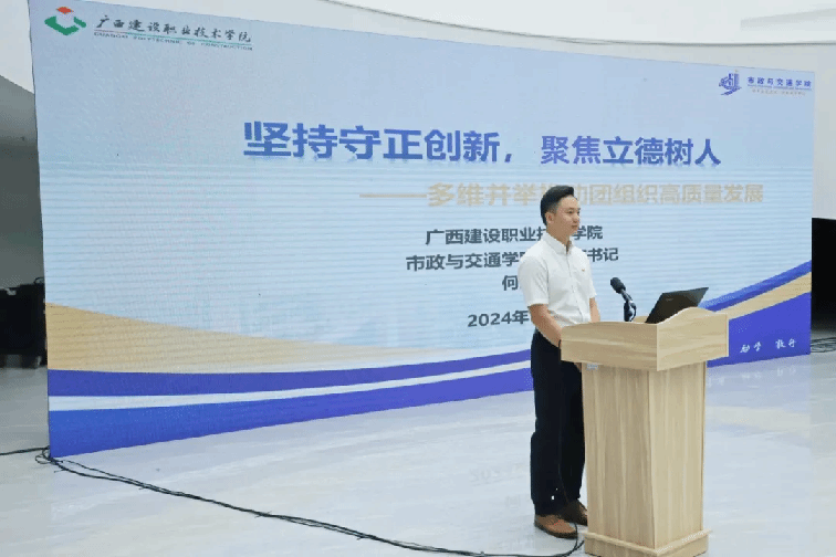 伟德国际官网市政与交通学院团总支书记何炎以《坚持守正创新,聚焦立德树人——多维并举推动团组织高质量发展》为题,分享了在二级学院团组织建设中,以“立德树人”为中心提升思政引领实效、以“社区服务+创新创业”为驱动助力学生全面发展、以“实践育人”为抓手打造团组织特色品牌的工作经验,通过团组织高质量发展推动学生工作高质量发展。