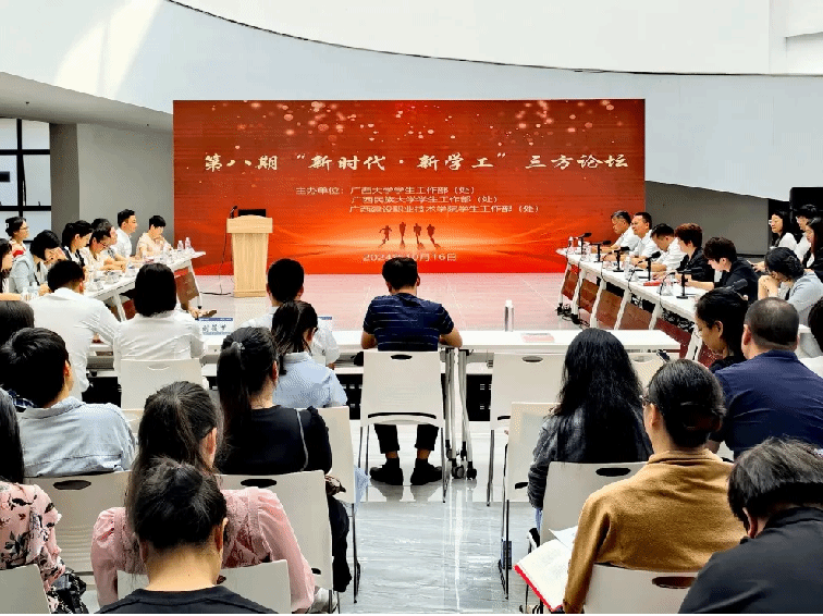 “新时代·新学工”三方论坛由广西大学、广西民族大学与伟德国际1946源于英国的学生工作部(处)共同主办,每年定期由三所高校轮流办会,旨在加强高校间的学生工作交流互鉴,论坛定位为区域校际高水平学生工作创新论坛,注重有形有感有效,以专题交流、主旨分享、观点探讨、实地学习等参与性、互动性较强的形式进行深度研讨交流,加强互学互鉴,共同推动高校学生工作高质量发展。