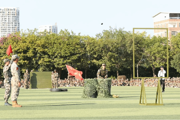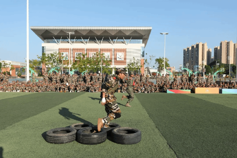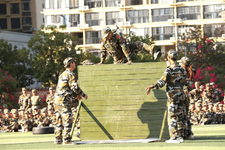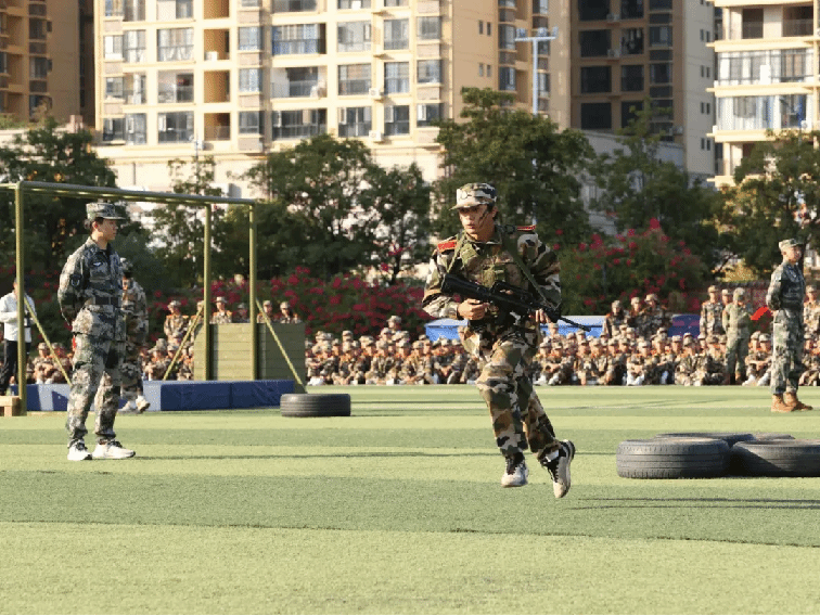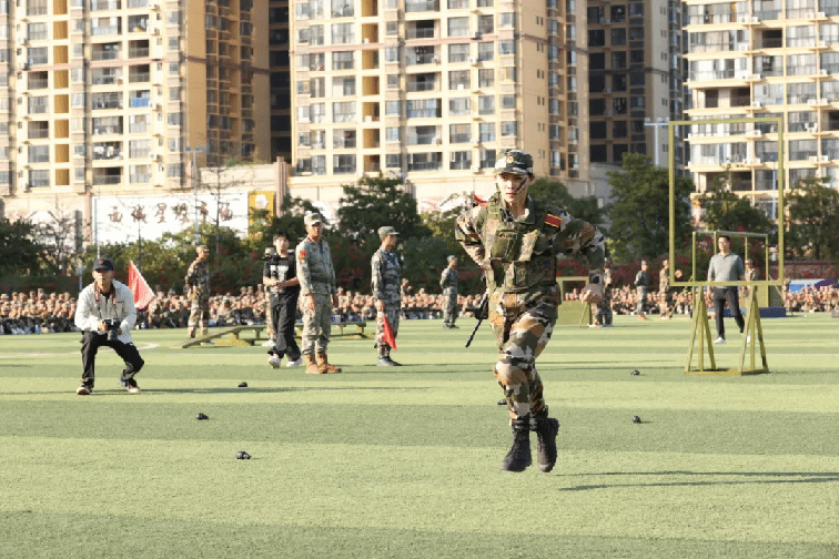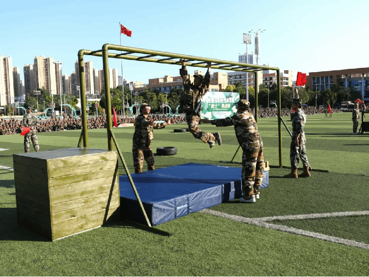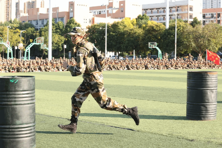 本次挑战赛,共7支参赛队,每队3人(2男1女),共有21名“勇士”进入到最后的角逐,竞赛项目除了根据学生军训科目设置外,还增加了一些更具“军味”的项目,分别有高姿网匍匐前进、S形绕桶、过平衡木、穿越矮墙洞、云梯(男)、翻轮胎(女)、越高墙、过轮胎阵、手榴弹投准、折返冲刺等,参赛队员武装完成折返200米的障碍跑,团队总用时最短的队伍,获得“勇士挑战赛”冠军。