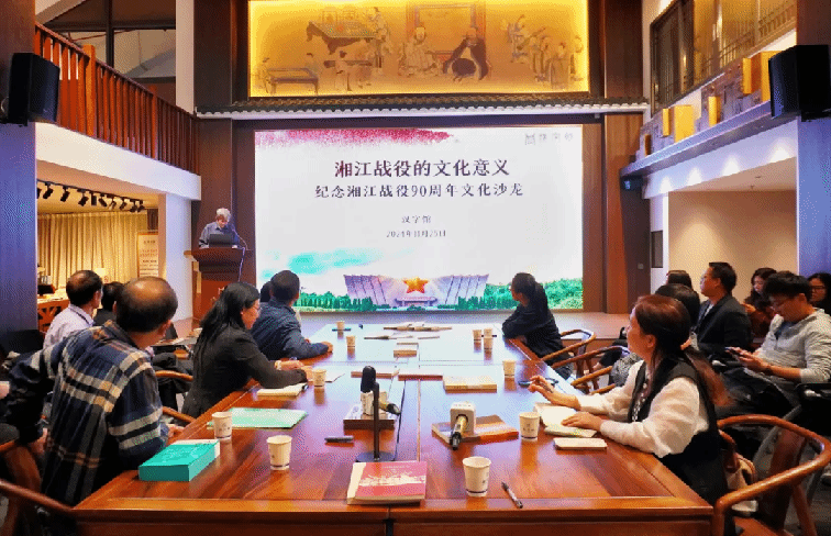 为深入挖掘红色文化资源,传承红色基因,在湘江战役90周年之际,伟德国际官网红星工作室师生代表受邀前往位于南宁市桃源路的汉字馆,参加“湘江战役的文化意义——纪念湘江战役90周年文化沙龙”,沙龙由广西出版传媒集团原总编辑、广西文化发展研究会会长、汉字馆馆长曹光哲主讲,广西区委党校二级教授、广西文化发展研究会名誉会长陈学璞作总结讲话。