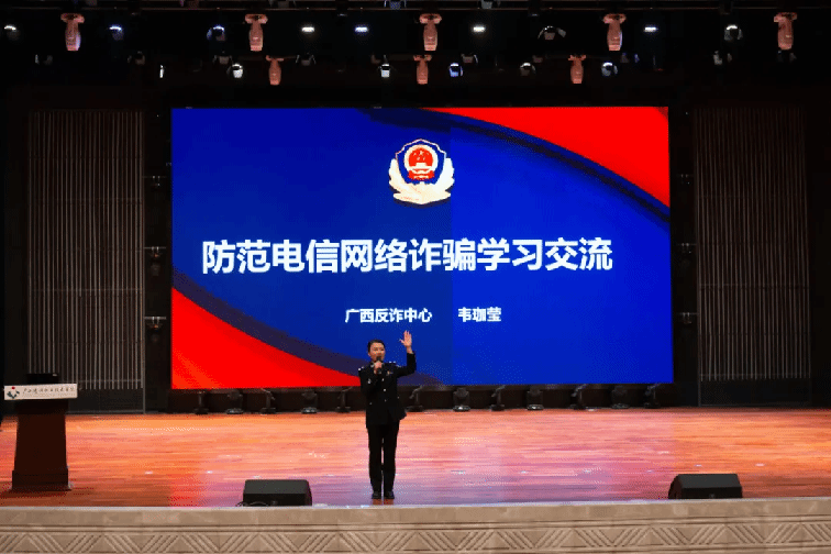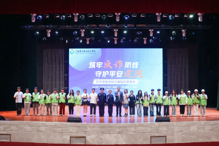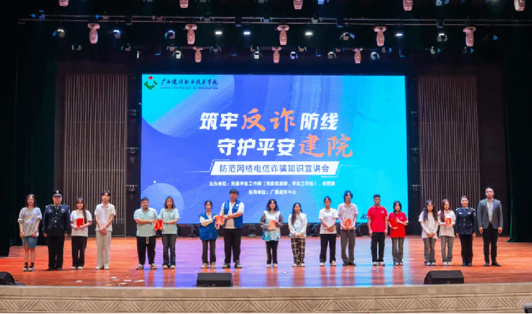 近日,由广西反诈中心指导,伟德国际官网学生工作部、校团委共同主办的“筑牢反诈防线,守护平安建院”防范电信网络诈骗知识校园宣讲会在学校礼堂举行,活动邀请广西反诈中心韦珈莹警官和广西反诈宣传形象大使、南宁铁路公安局秦国平警官担任宣讲嘉宾,吸引近千名学生参加,伟德国际官网学生工作部杨海基副部长出席活动。