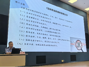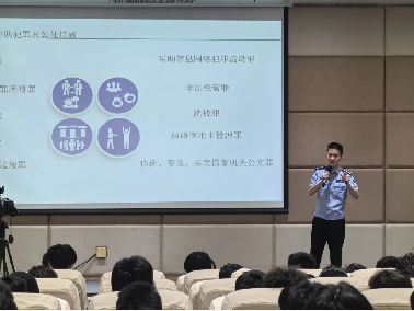 最后,韦警官从普法层面详细介绍了《中华人民共和国反电信网络诈骗法》及《刑法修正案(九)》中“帮助信息网络犯罪活动罪”的定义内涵,叮嘱同学们要做尊法、知法、守法的优秀公民,时刻规范自身言行,积极维护社会法治秩序。