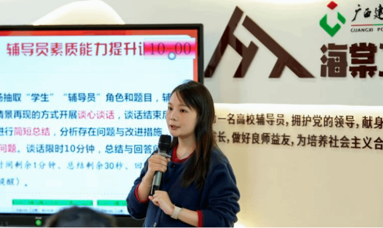 扬帆工作室主持人、第十届广西高校辅导员素质能力大赛一等奖获得者冯光帆老师作谈心谈话经验分享。他对各参训学员的表现给予充分肯定,并针对案例逐一进行多角度分析。他指出,在谈心谈话中要达到有效沟通“功在日常”——应从熟悉理论政策、掌握学生特点、了解教育规律、提升沟通技巧等方面进行日常积累,切实达到发挥教育作用、解决实际问题、增进师生关系的效果。