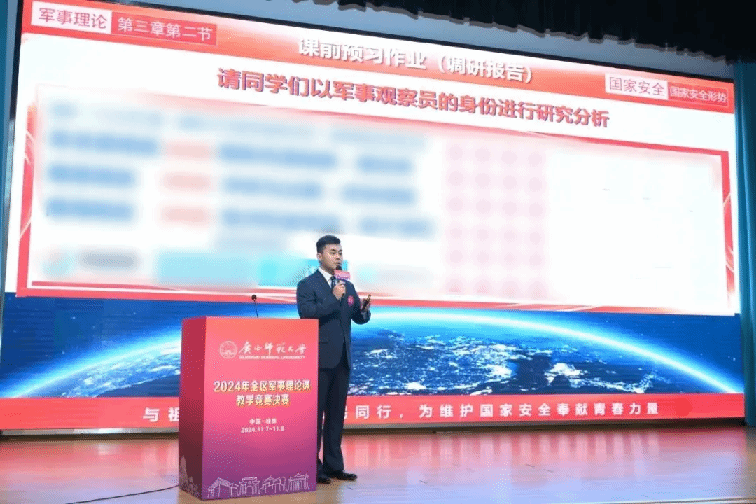 宋景弘老师以《国家安全——国家安全形势》为题进行讲课,课程聚焦国内外安全动态,解析传统与非传统安全挑战,涵盖军事、政治、经济等多维度安全议题。他通过大量的案例剖析,揭示安全威胁本质,探讨应对策略,积极引导学生认识我国面对潜在威胁所采取“主动铸防”坚决态度的重要性,以及全民“投身国防·共筑复兴中国梦”的必要性。