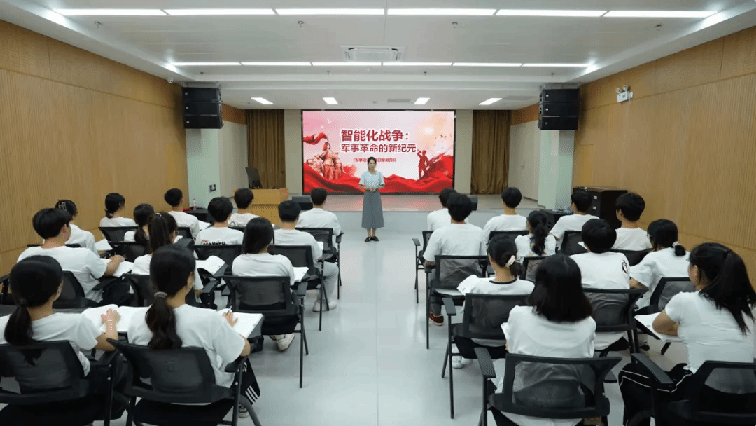 黄华老师以《信息化战争——人工智能视角下》为题进行讲课,他结合最新战例分析了信息化战争的发展趋势,从我国国防和军队“四个现代化”建设的详细举措出发,阐释了如何打赢未来信息化战争,增强学生的民族自豪感和爱国主义情怀,激励学生积极投身国防建设,为守护国家安全贡献青春力量。
