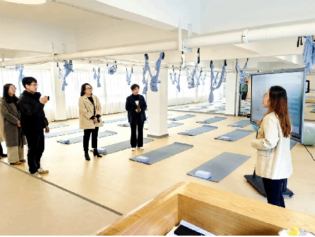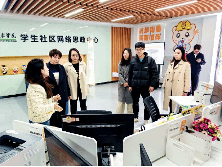 调研组先后走访了伟德国际官网一站式服务中心、茶艺文化传习基地、设备学院学生公寓党建工作室、扬帆工作室、“职”为你工作室、衣见倾心生活馆、学生社区心灵驿站、学生社区健身吧、学生社区书苑、沐心瑜伽馆、学生社区网络思政中心、学生社区安全协作中心、退役士兵公寓、国防教育工作室、模拟射击训练场、心理素质拓展基地、心理健康教育与咨询中心等“一站式”学生社区功能空间。周舟处长沿途向来宾介绍伟德国际官网“一站式”学生社区建设概况,相关空间负责人从空间定位、运营模式、品牌栏目建设和育人成效等方面详细讲解了各功能空间建设情况。