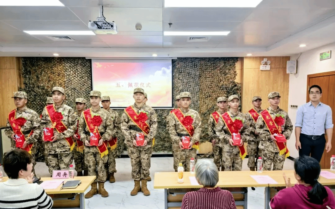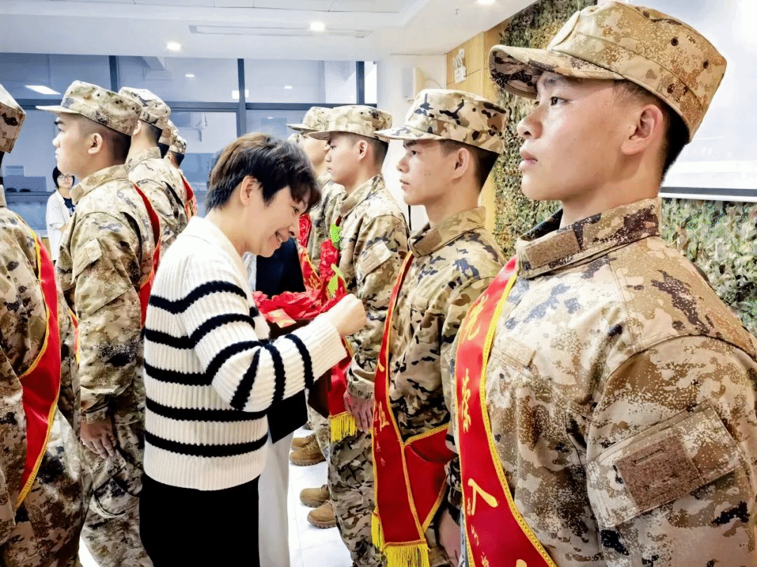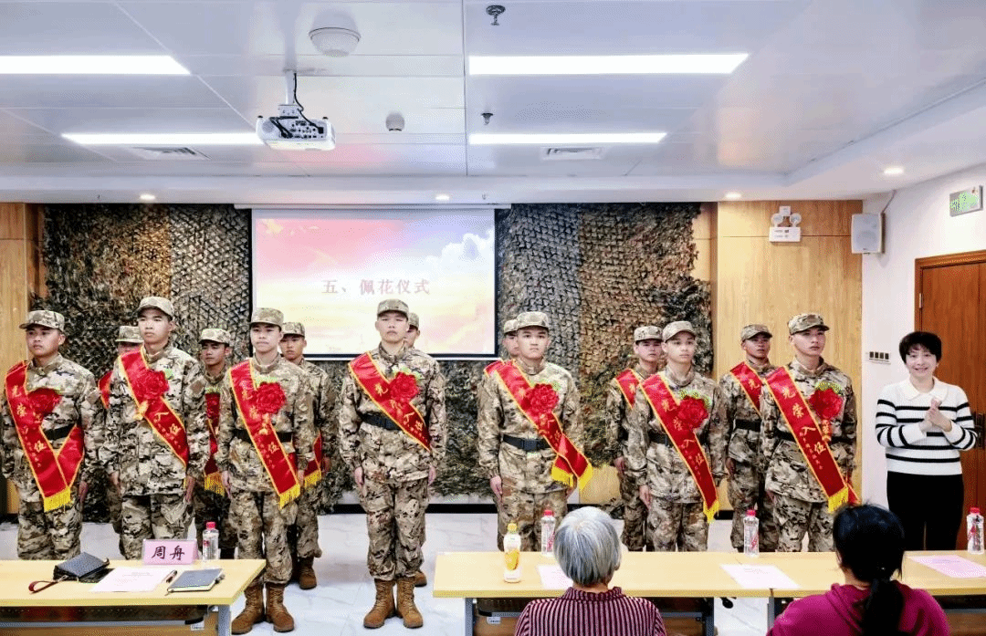 学校党委学生工作部(党委武装部、学生工作处)周舟部长为新兵们逐一佩戴上大红花,希望他们带着家人与师生的美好祝福,逐梦军营,建功立业。