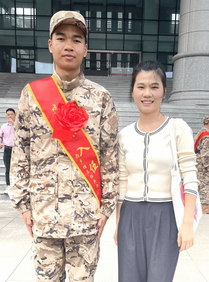 设备2203班付乾同学的姑姑:“虽有不舍,但更多的是对孩子的信任与期望,希望他们在军营中能刻苦训练,成长为有担当的军人,为祖国站好岗,为家乡争光,为学校争光!”