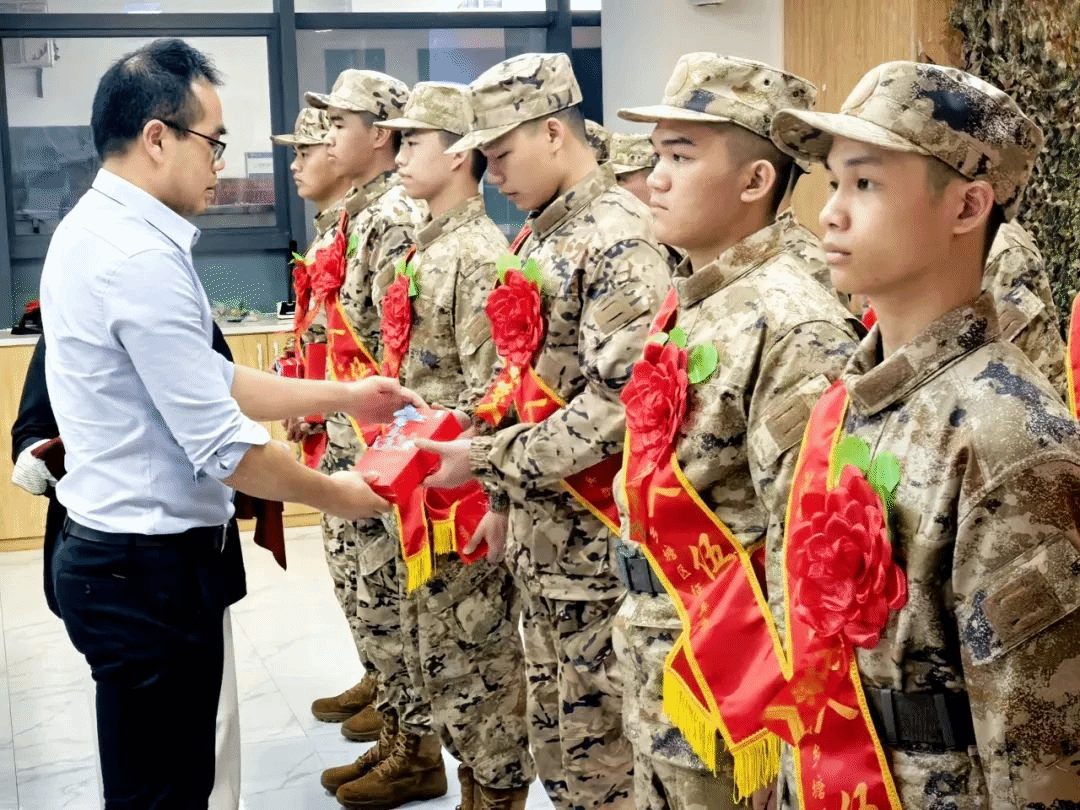 学校党委学生工作部(党委武装部、学生工作处)杨海基副部长向新兵们赠送了学校专门准备的钢笔礼盒,寓意携笔从戎,书写青春华章!