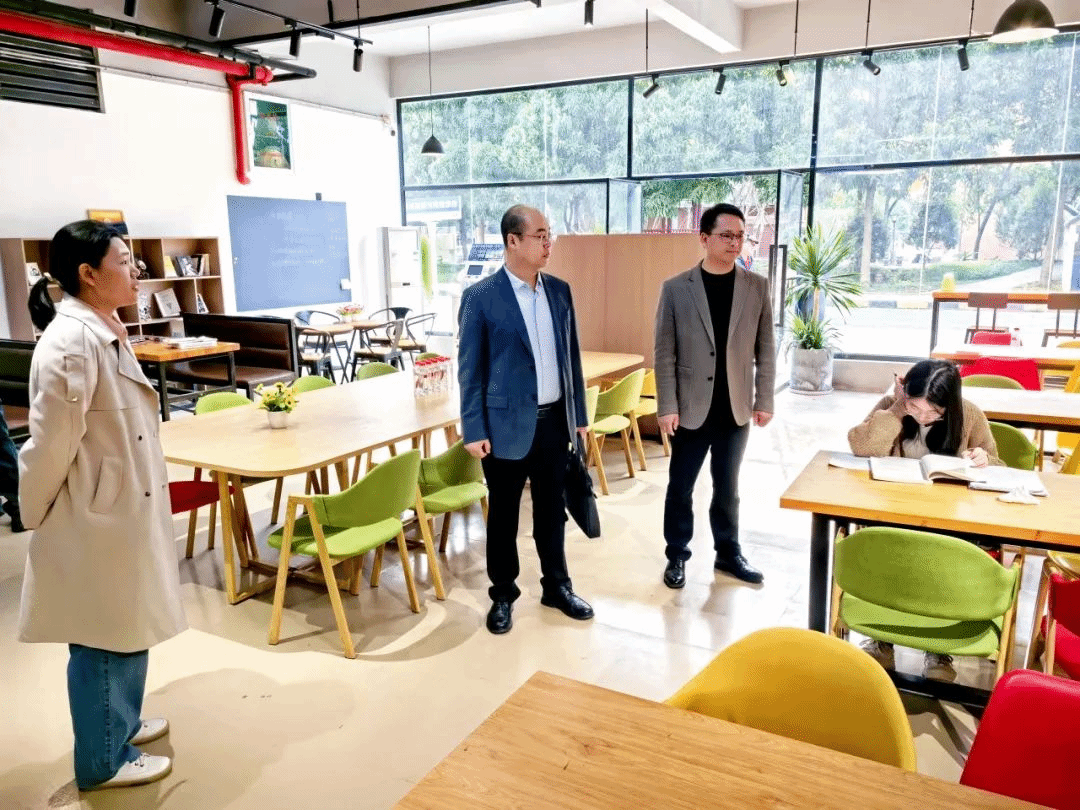 调研组一行先后走访了伟德国际官网一站式服务中心、茶艺文化传习基地、市政学院学生公寓党建工作室、知行工作室、红星工作室、衣见倾心生活馆、学生社区心灵驿站、学生社区健身吧、学生社区书苑、沐心瑜伽馆、学生社区网络思政中心、学生社区安全协作中心、退役士兵公寓、国防教育工作室、模拟射击训练场等功能空间。杨海基副部长、唐红星副书记沿途向调研组介绍了伟德国际官网“一站式”学生社区建设概况,相关空间负责人从空间定位、运营模式、品牌栏目建设和育人成效等方面详细讲解了功能空间建设情况。