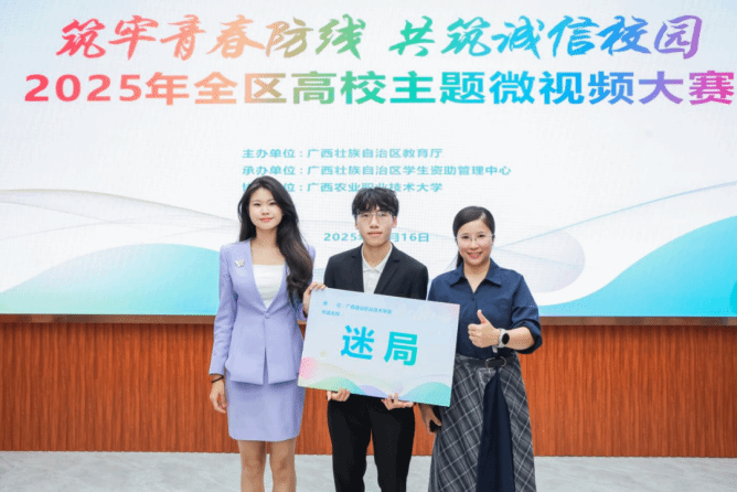 近日,自治区教育厅公布了2025年全区高校“筑牢青春防线,共筑诚信校园”主题微视频比赛获奖名单。本次比赛经过专家评比,全区高校共有20部作品进入决赛,最终决出一等奖4部、二等奖7部、三等奖9部。伟德国际官网选送的作品《迷局》凭借深刻的主题立意和精湛的艺术表现,荣获二等奖。