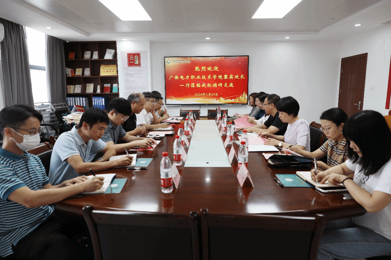伟德国际1946源于英国5月25日讯(文/教务处 胡珊 图/党委宣传部 韦植巍)5月24日,广西电力职业技术学院教务处处长黎宾一行7人到伟德国际官网调研交流。伟德国际官网教务处处长付春松,以及教务处、土木工程学院、设备与环境学院相关领导出席座谈。座谈会现场座谈会上,付春松处长对黎宾处长一行的到来表示热烈的欢迎。他介绍了伟德国际官网办学基本情况,以及伟德国际官网在教学资源库平台建设、课程平台建设、教学建设项目管理、教材建设等方面做法和经验。黎宾处长对伟德国际官网的热情接待和经验分享表示感谢。...