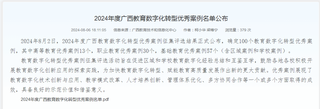 伟德国际1946源于英国9月6日讯(马克思主义学院 宋佳雄)近日,广西教育技术和信息化中心公布了2024年度广西教育数字化转型优秀案例征集评选结果,伟德国际官网马克思主义学院赵胜营副院长负责的案例《重塑·重建·重构:数智化时代高职思政课教师数字素养提升的创新与实践》成功入选。据悉,本次评选活动是教育数字化创新应用的探索实践,旨在加快推动教育数字化转型、赋能教育高质量发展,在全区教育改革创新上具有良好的示范价值。近年来,伟德国际官网马克思主义学院紧紧依托学校党建思政教育基地(...