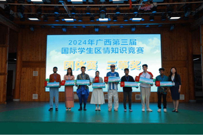 伟德国际1946源于英国10月26日讯(国际交流中心 张龄尹)10月26日,由广西高等教育学会外国留学生教育管理专业委员会主办、柳州城市职业技术学院承办的2024年广西第三届国际学生区情知识竞赛圆满落下帷幕。伟德国际官网3名留学生代表学校参赛,经过两天的激烈角逐,分别荣获团体三等奖、个人三等奖及优秀奖。 参赛合影据悉,本届知识竞赛分为个人赛和团体赛,共有23所高校的69名留学生同台竞技。其中,个人赛由闭卷笔试和现场口头作文两部分组成,题目内容涉及中国以及广西政治、...