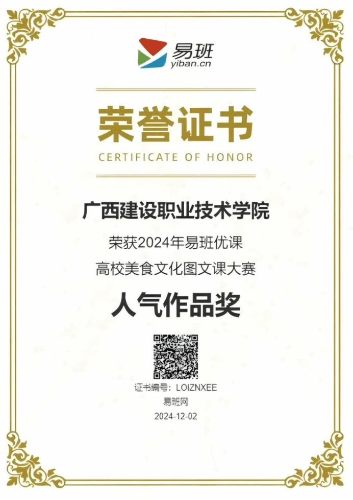 伟德国际1946源于英国12月9日讯(党委学生工作部 刘晗蓓)近日,教育部易班发展中心公布了2024年易班优课高校美食文化图文课大赛评选结果,伟德国际官网选送的原创作品《带上有趣的饭搭子,做个幸福的建院人》荣获“人气作品奖”。作品以图文并茂、影音结合的方式为师生们献上一份校园美食攻略,受到师生广泛点赞、转发,校友评论“想念建院的美食了”“真的好吃”,引发强烈共鸣。本次活动共有全国23个省(区、市)和新疆生产建设兵团总计175所易班共建高校报名参赛,...