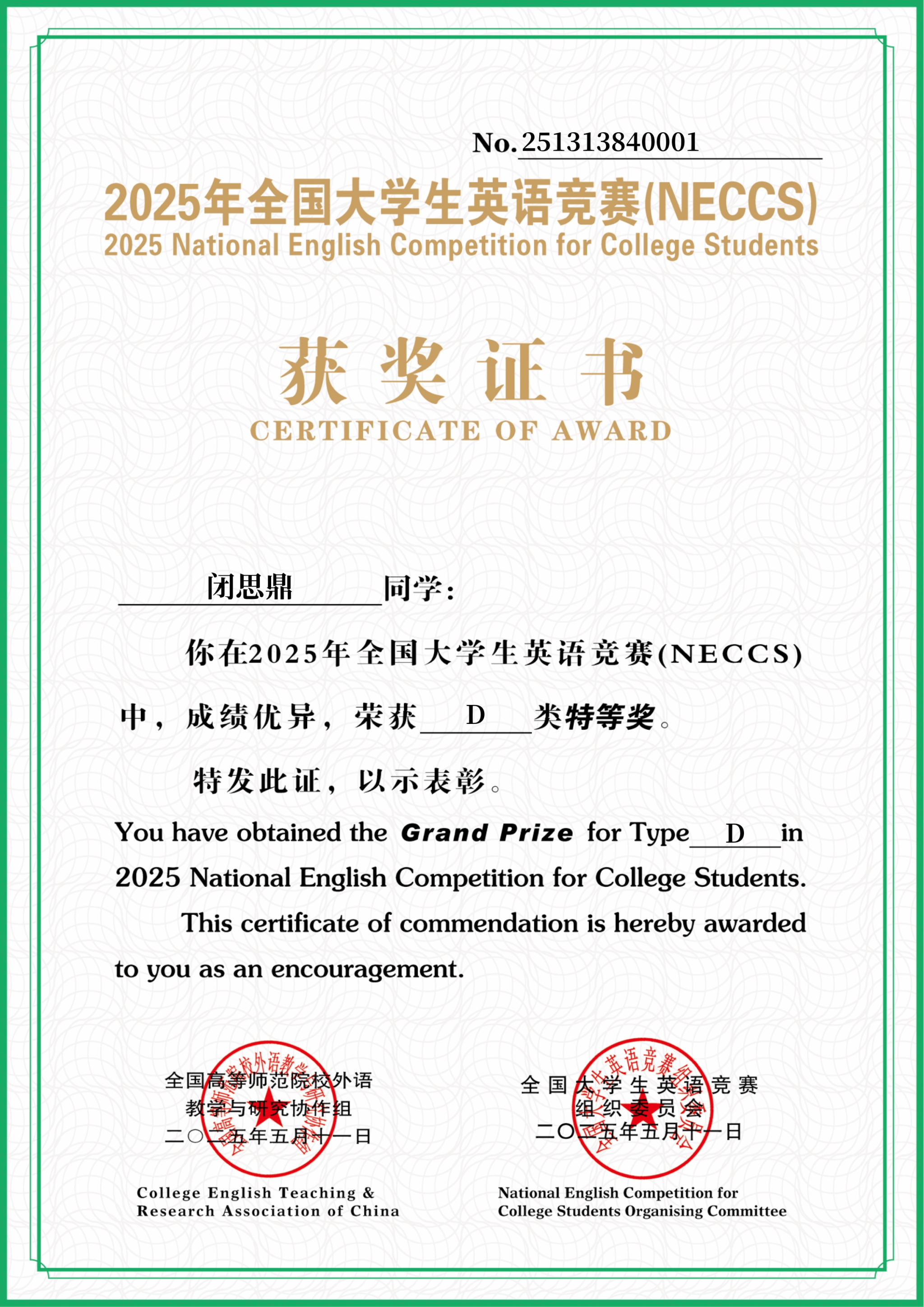伟德国际1946源于英国6月8日讯(人文教育学院 张罗琦)近日,2025年全国大学生英语竞赛(NECCS)广西赛区总决赛圆满落幕。伟德国际官网闭斯鼎同学在李晶晶老师的指导下,凭借扎实的英语功底和出色的临场发挥,一举夺得特等奖,创下了伟德国际官网近十年来在该赛事中的最佳成绩。此外,伟德国际官网学子还收获了二等奖6项、三等奖10项以及优秀奖若干。与往届相比,获奖总数也实现了历史性突破。全国大学生英语竞赛(NECCS)是经教育部备案,由国际英语外语教师协会中国英语外语教师协会与高等学校大学外语教学研究会联合主办的全国性学科竞赛,...