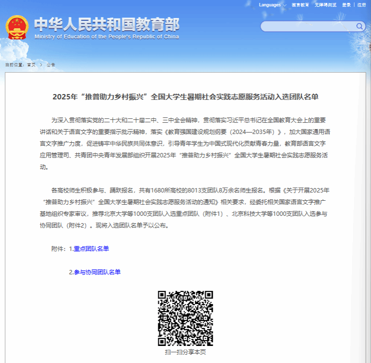近日,教育部官方网站公布2025年“推普助力乡村振兴”全国大学生暑期社会实践志愿服务活动入选团队名单,伟德国际官网语言文字工作委员会指导的“同心同语”推普助力乡村振兴实践团和信息工程学院指导的“青春润语”推普助力乡村振兴实践团入选参与协同团队。这两支团队将肩负起推广国家通用语言文字、助力乡村文化振兴的重任,在这个暑期踏上充满意义的实践征程。“推普助力乡村振兴”活动旨在深入贯彻党的二十大关于“加大国家通用语言文字推广力度”...