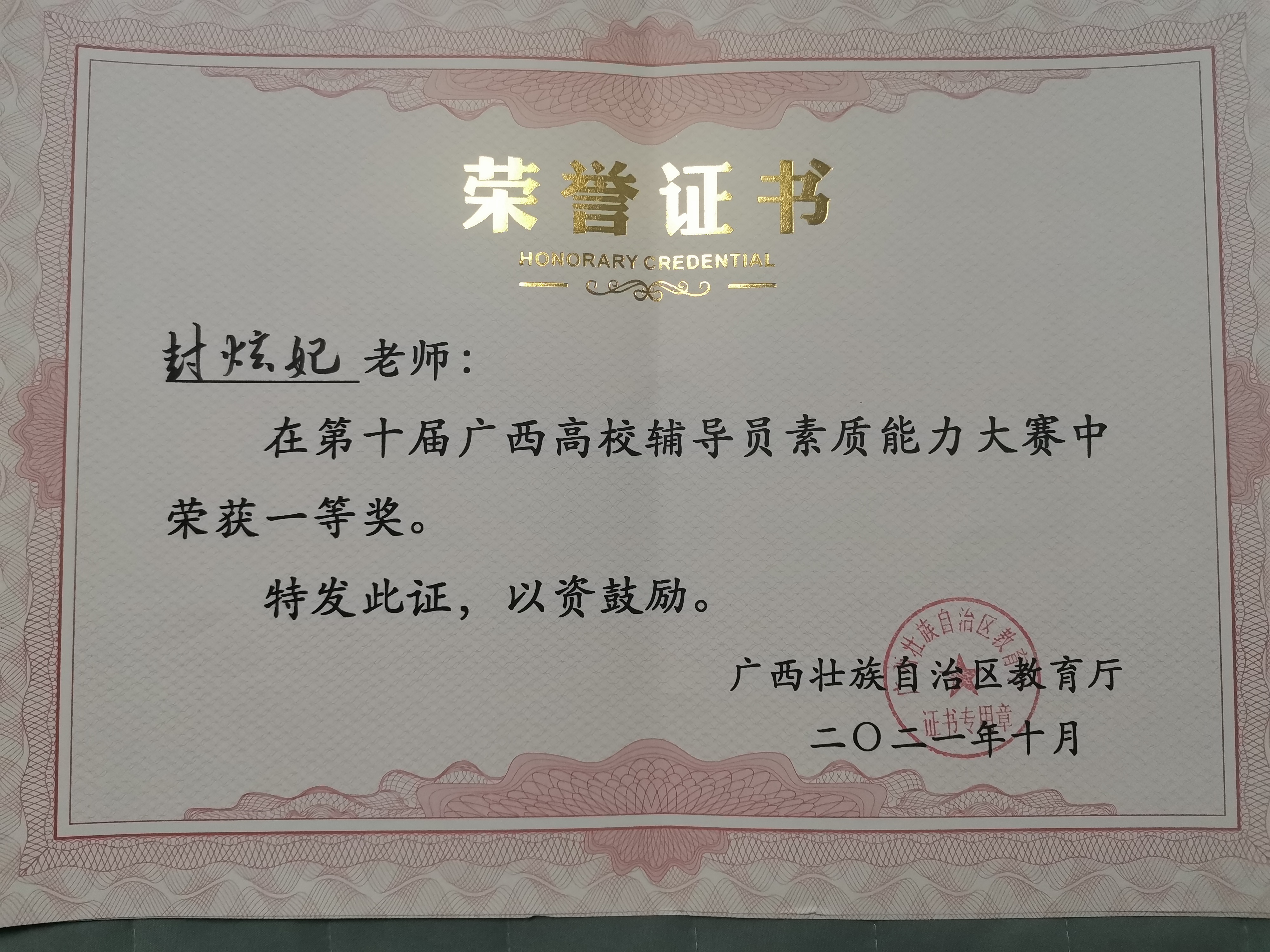 伟德国际1946源于英国10月24日讯(管理工程学院 郭海棠)10月20日至22日,第十届广西高校辅导员素质能力大赛在广西师范大学顺利落下帷幕,伟德国际官网管理工程学院辅导员封炫妃、建筑与规划学院辅导员冯光帆双双荣获大赛一等奖,其中封炫...