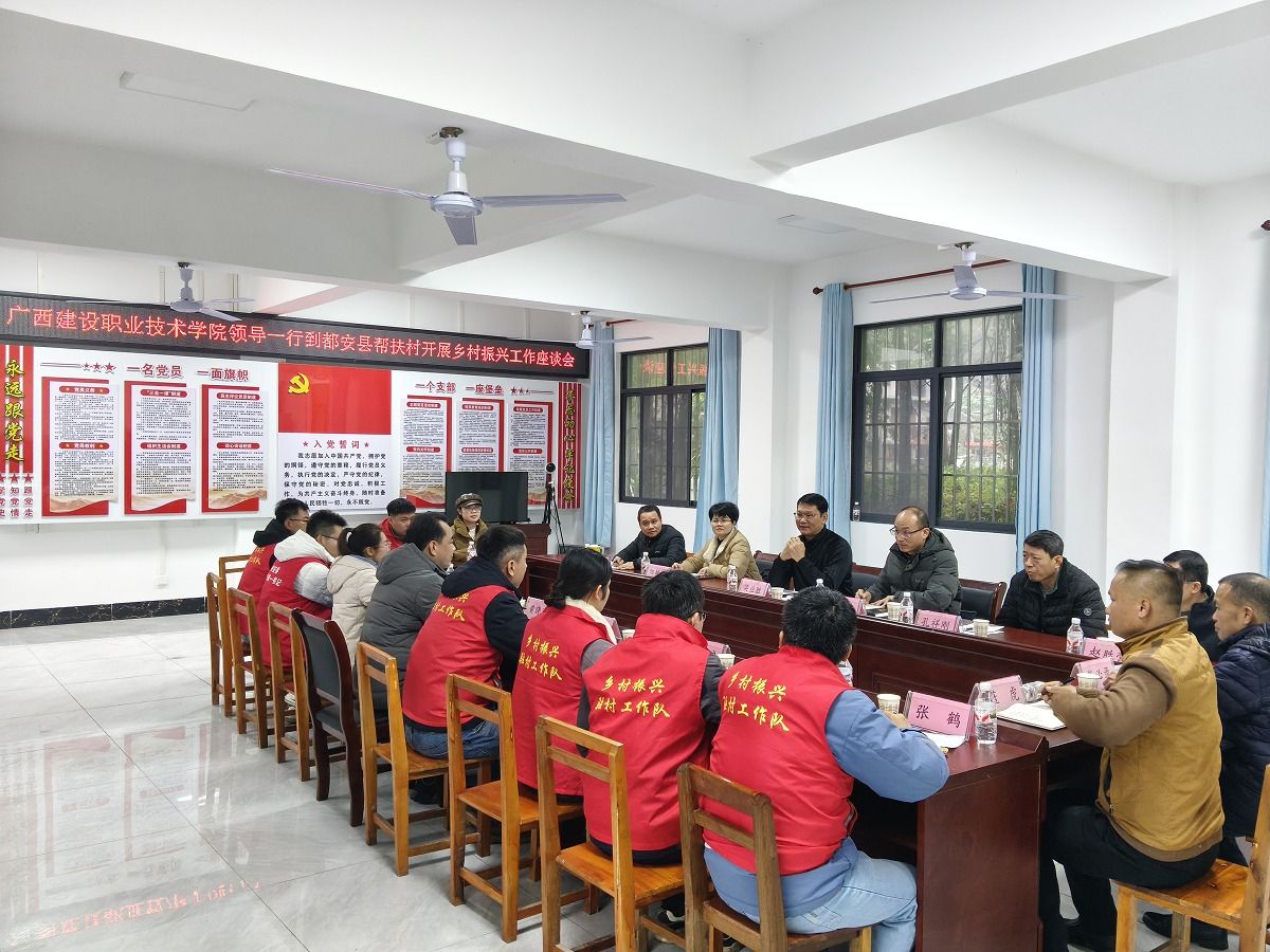 为深入贯彻国家乡村振兴战略,进一步推动学校定点帮扶工作走深走实,近日,学校党委副书记、校长梁业胜一行赴都安县帮扶村,开展乡村振兴工作专题调研座谈会,并亲切慰问了学校派驻当地的驻村第一书记和工作队员。座谈会上,学校派驻帮扶村的第一书记、驻村工作队员进行了工作情况汇报,都安县澄江镇主要领导详细介绍了巩固拓展脱贫攻坚成果、全面推进乡村振兴方面的总体情况、特色产业发展布局、乡村建设规划以及当前面临的重点难点问题,...