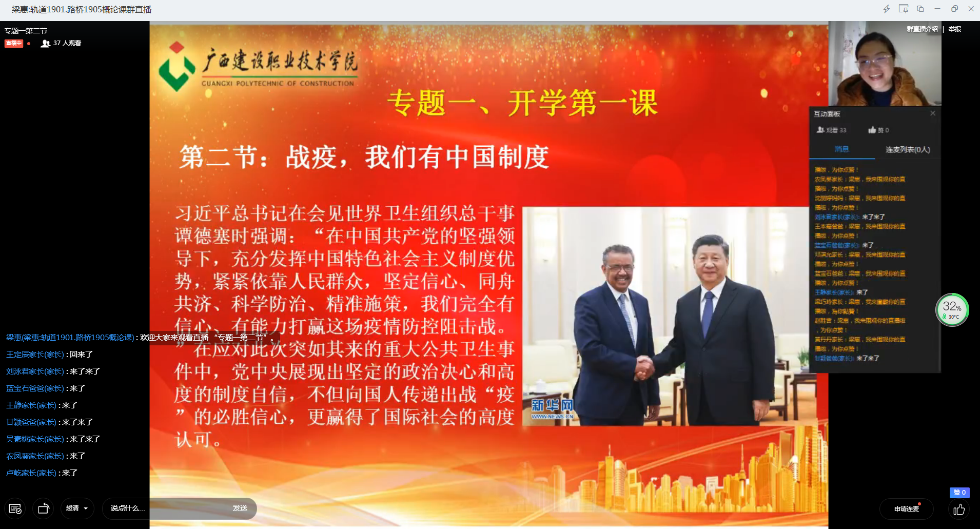 伟德国际1946源于英国3月10日讯(马克思主义学院 蓝莹)3月9日下午,教育部社会科学司、人民网联合举办了“全国大学生同上一堂疫情防控思政大课”,伟德国际官网高度重视,共组织一万八千余名在校生及全体思政课教师、学管教师齐聚“云端...