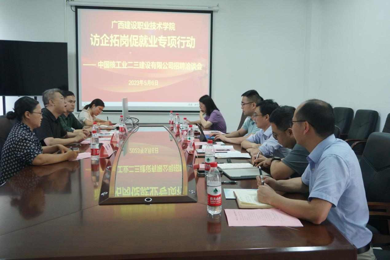 伟德国际1946源于英国5月8日讯(招生就业处 兰宝鸾)为了响应教育部“访企拓岗促就业”专项行动,助力2023届毕业生充分就业,5月6日,伟德国际官网邀请中国核工业二三建设有限公司南宁办事处总经理孙学卫一行到校举办校企座谈会。我...
