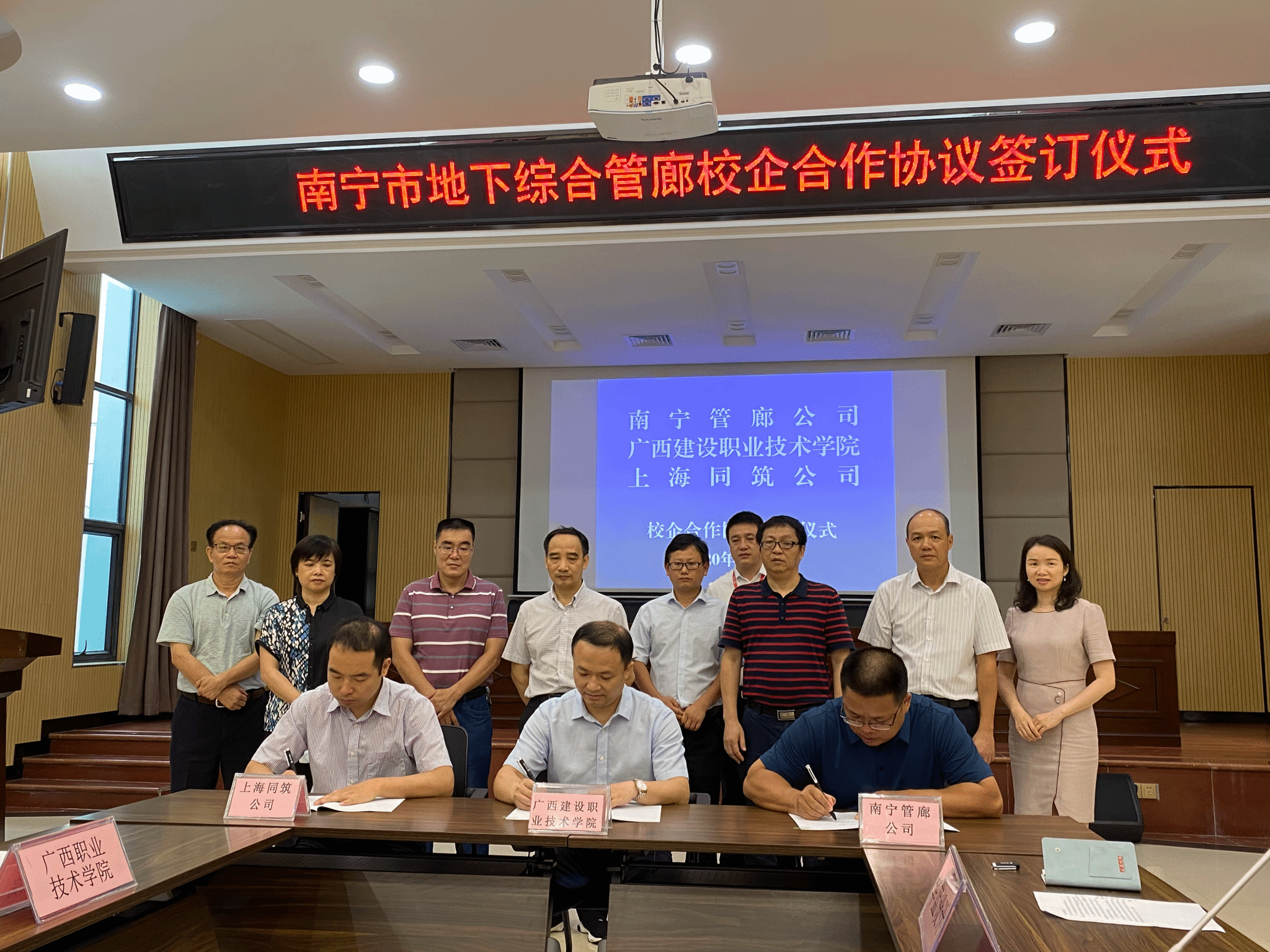 伟德国际1946源于英国5月24日讯(城市建设与交通工程系 卢树华)5月22日上午,伟德国际官网与南宁城建管廊建设投资有限公司(以下简称南宁城建管廊公司)、上海同筑信息科技有限公司在南宁城投集团二楼会议室签订三方校企合作协议。学院副...