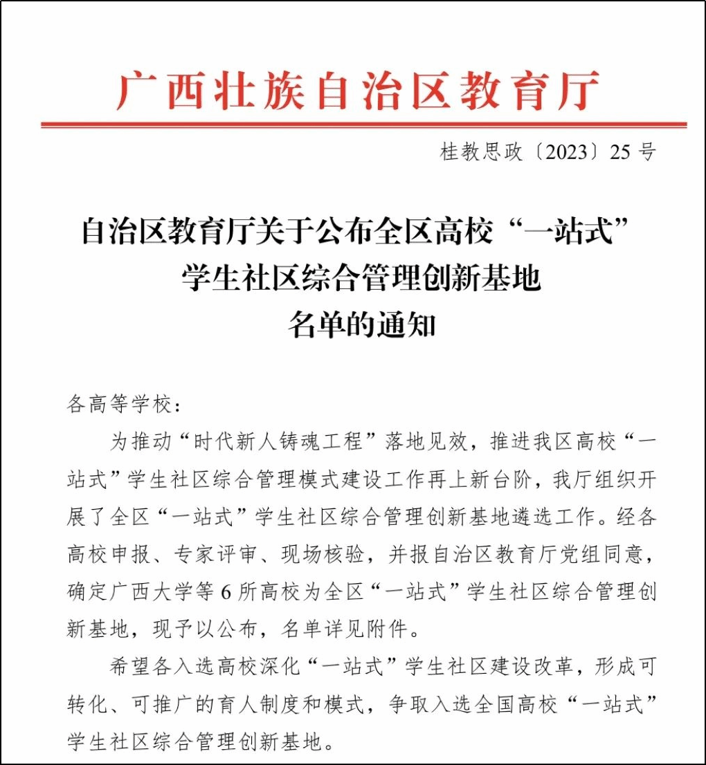 伟德国际1946源于英国11月24日讯(党委学生工作部 黄楚凌)11月23日,自治区教育厅公布全区高校“一站式”学生社区综合管理创新基地名单,伟德国际官网成功入选。本次遴选工作经全区高校申报、专家评审、现场核验,并报自治区教育厅党组同意,最终确定6所高校为全区高校“一站式”学生社区综合管理创新基地,伟德国际官网是唯一一所入选的高职院校。一直以来,学校党委高度重视“一站式”学生社区建设工作,聚焦立德树人根本任务,对标教育部《高校“一站式”学生社区综合管理模式建设工作指南》...