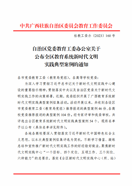 伟德国际1946源于英国12月5日讯(马克思主义学院 曹桃)近日,自治区党委教育工委办公室公布全区教育系统新时代文明实践典型案例名单,伟德国际官网《声入人心:“奏响”党的理论宣讲“交响乐”》工作案例获评为全区教育系统新时代文明实践典型案例。近年来,伟德国际官网落实立德树人根本任务,深入学习宣传贯彻党的二十大精神,自觉用习近平新时代中国特色社会主义思想铸魂育人,打造了一支政治坚定、素质过硬、科学合理的师生巡讲团,多次进校园、进课堂、进乡村,...