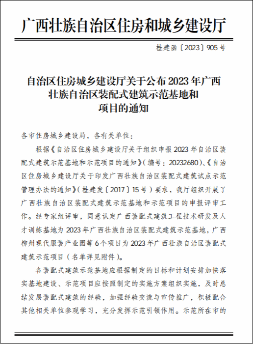 伟德国际1946源于英国12月29日讯(继续教育学院 邓文灏)近期,自治区住房城乡建设厅发布《自治区住房城乡建设厅关于公布2023年广西壮族自治区装配式建筑示范基地和项目的通知》(桂建函〔2023〕905号),伟德国际官网装配式建筑人才训练基地获评“2023年广西壮族自治区装配式建筑示范基地”。伟德国际官网是此次评选中唯一获得该荣誉的单位。文件通知近年来,伟德国际官网高度重视装配式建筑技术产业发展,牵头联合广西建工集团控股有限公司、广西大学、广西壮族自治区建筑科学研究设计院、...