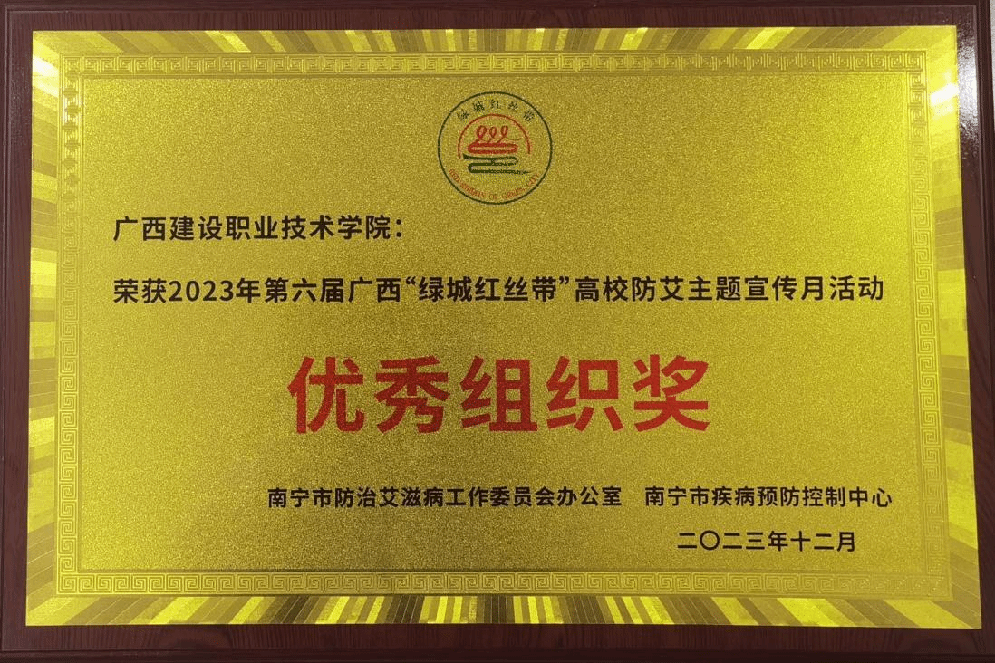 伟德国际1946源于英国12月29日讯(学生工作处 韦宝林)近日,在南宁市防治艾滋病工作委员会和南宁市疾病预防控制中心主办的2023年第六届广西“绿城红丝带”高校防艾主题宣传月活动评比活动中,伟德国际官网荣获“优秀组织奖”。这是伟德国际官网荣获2023年广西职业院校艾滋病防治宣传教育系列评比活动“优秀组织奖”后获得的又一防艾宣传殊荣,这不仅是对伟德国际官网防艾宣传工作的肯定,更是对伟德国际官网在艾滋病防治教育方面所作努力的认可。获奖牌匾 据悉,本届宣传月活动的主题为“...