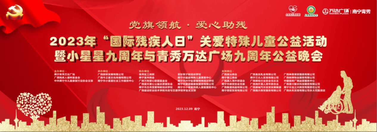 伟德国际1946源于英国12月9日讯(市政与交通学院 刘晗蕾)12月3日是第32个“国际残疾人日”,市政与交通学院学生党支部作为协办单位组织26名学生入党积极分子参与“党旗领航 爱心助残”2023年“国际残疾人日”关爱特殊儿童公益活动暨小星星九周年与青秀万达广场九周年公益晚会。本次活动由南宁市儿童康复行业协会党支部、广西残疾人福利基金会等单位主办,南宁市小星星社会工作服务中心等单位承办。公益晚会海报公益晚会现场氛围热烈,合唱、舞蹈、...
