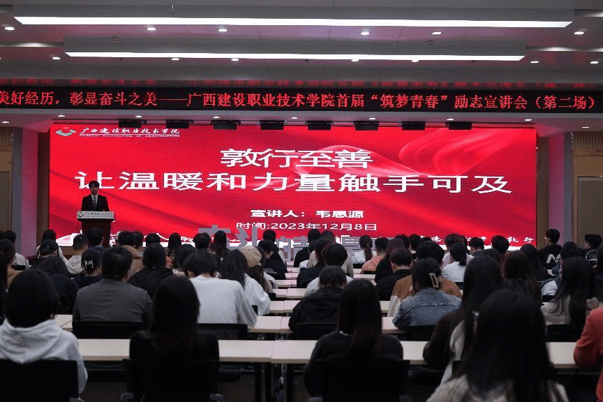 伟德国际1946源于英国12月9日讯(土木工程学院 文/冯光帆 图/杨凯文)为讲好奋斗故事,培养奋斗精神,助推优良校风学风形成,让奋斗之美深入学业、汇入生活、融入文化、渗入人心,12月8日,由党委学生工作部主办、扬帆工作室承办的首届“筑梦青春”励志宣讲会(第二场)在四教二楼报告厅举行。本场宣讲会由扬帆工作室主持人冯光帆老师主持,来自7个二级学院的200余名家庭经济困难生到场聆听学习。宣讲过程中,土木工程学院建工2113班于谋康以《坚定信仰,...