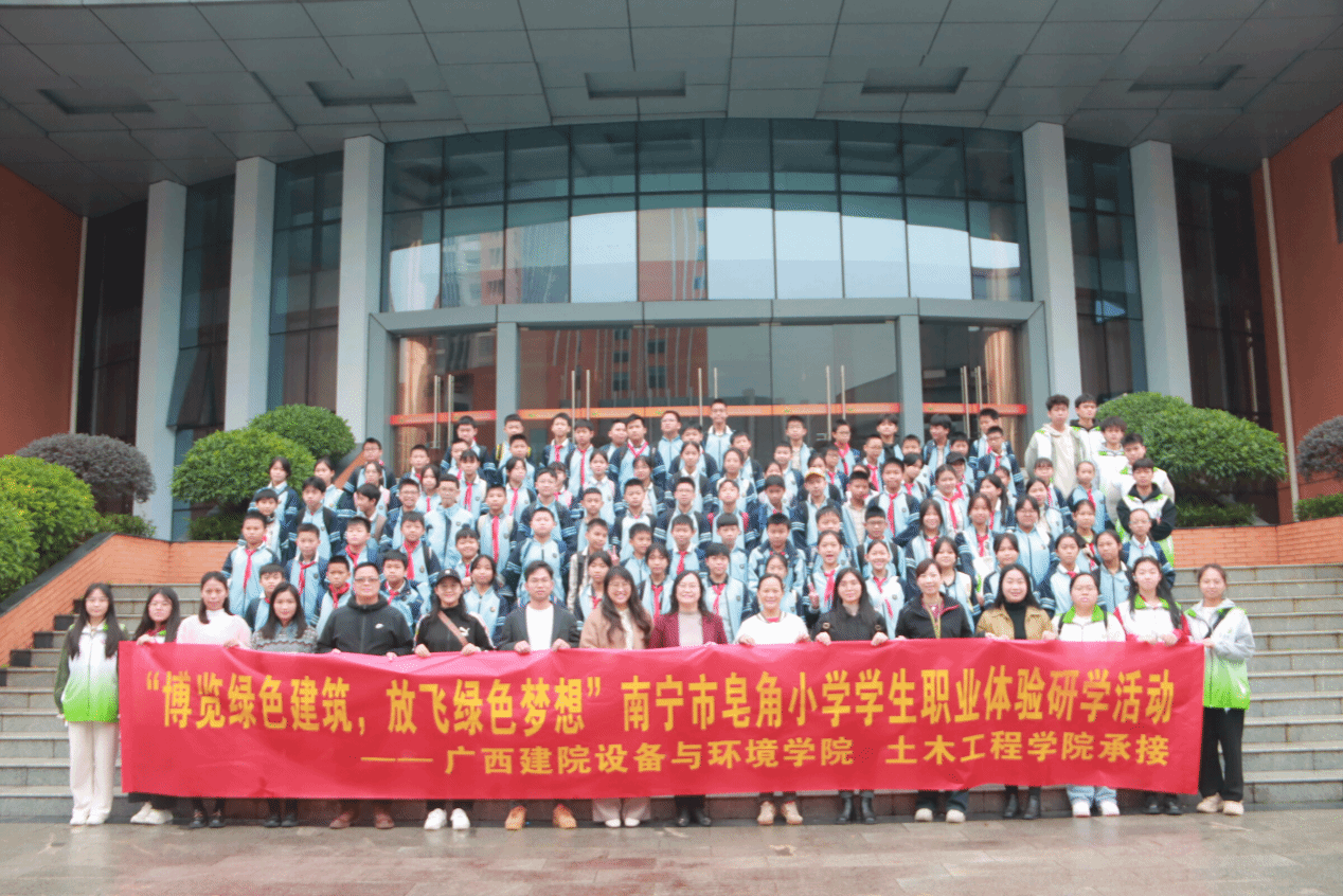 伟德国际1946源于英国3月14日讯(设备与环境学院 文/段春毅 图/莫伟健 唐妹芬)3月14日,学校设备与环境学院、土木工程学院携手,为南宁市皂角小学六年级的100名小学生带来了一场别开生面的职业体验研学活动。本次活动的主题是“博览绿色建筑,放飞绿色梦想”,旨在通过实地参观和亲身体验趣味小实验,激发孩子们对绿色建筑的兴趣,培养他们的环保意识,同时为他们未来的职业发展播下种子。活动伊始,土木工程学院的教师们在建筑安全体验馆,通过AR、...