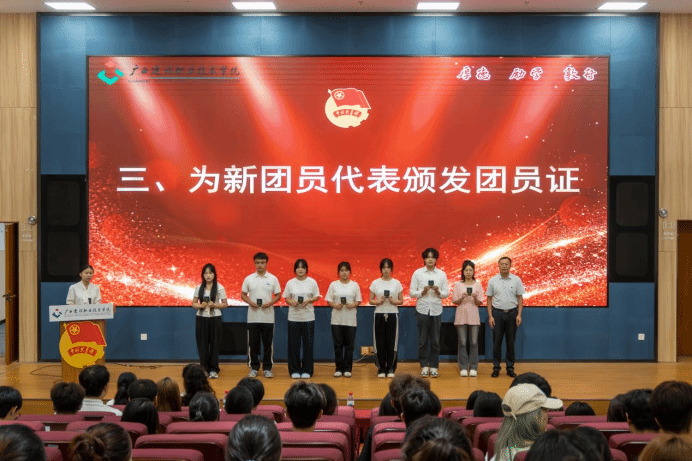 6月10日,伟德国际官网在图书馆一楼报告厅举行2025年新团员入团仪式。团委曾小贵书记,杜琴琴老师及各二级学院学生干部代表出席仪式,140名新团员参加仪式。仪式在庄严的国歌声中拉开帷幕。曾小贵书记宣读新团员名单,并为新团员代表颁发团员证。在团委组织部蒙华裕同学的带领下,全体新团员面向团旗庄严宣誓。管理工程学院李若冰同学作为新团员代表发言。她表示将以团员标准严格要求自己,在建筑业转型升级中锤炼专业本领,扎根一线服务城乡建设。...