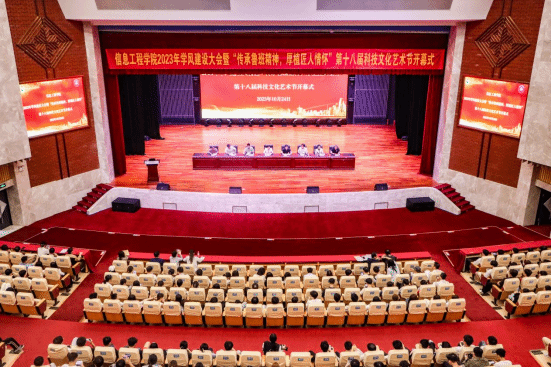 伟德国际1946源于英国10月24日讯(信息工程学院 徐田保)为进一步总结学风建设经验,宣传先进典型,夯实育人阵地,10月24日,信息工程学院在学校礼堂召开信息工程学院2023年学风建设大会暨“传承鲁班精神,厚植匠人情怀”第十八届科技文化艺术节开幕式。信息工程学院领导班子,全体教师、校企教师,2022级、2023级学生代表等900余人参加,会议由学院副院长覃一海主持。