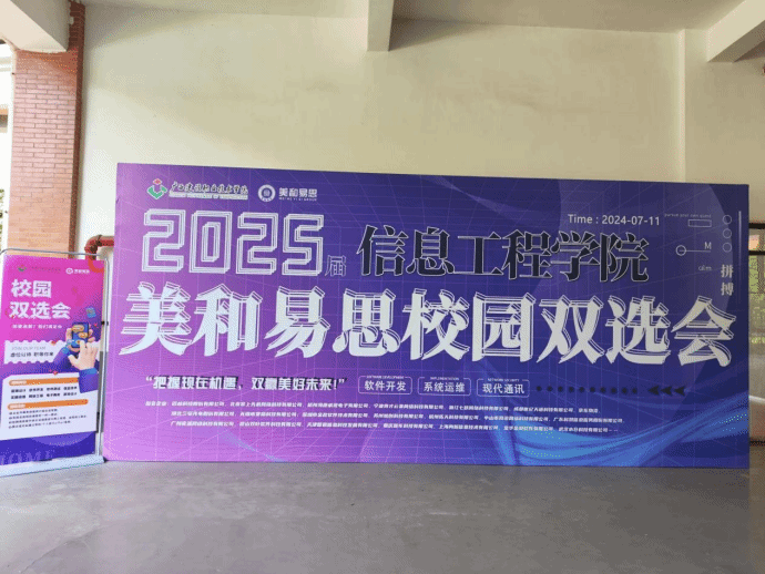 (文/石雨丹)为深入贯彻落实党中央、国务院关于“稳就业”“保就业”决策部署,积极响应教育部、人力资源和社会保障部的号召,7月11日,由信息工程学院主办、武汉美和易思数字科技有限公司承办的2025届美和易思校园双选会在学校第三教学楼一楼成功举办。