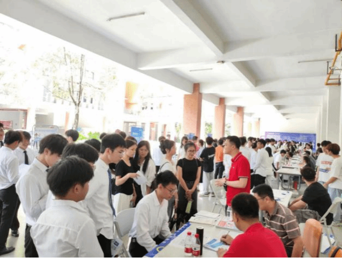 除了现场面试环节外,双选会还增设了互动环节,邀请部分企业和学生分享经验、交流心得,增加了双方的了解和信任,也为后续的实习就业打下了坚实基础。
