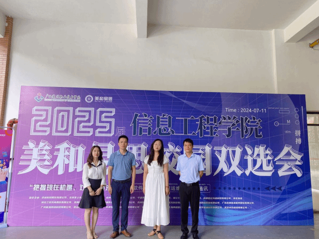 信息工程学院领导高度重视本次双选会,覃一海副院长亲临现场指导工作,与美和易思项目经理梁婷婷、教学主任方文韬进行了深入交流,共同探讨如何更好地促进学生就业。