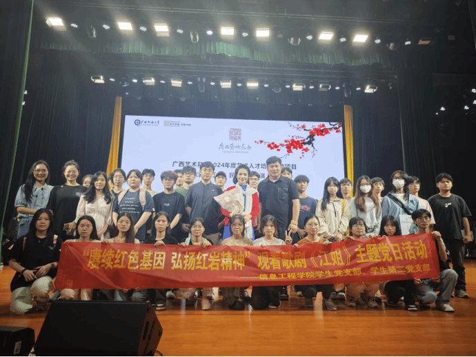 (文/图 平磊)为赓续红色血脉、厚植爱党爱国情怀,引导师生党员从革命先辈事迹中汲取奋进力量,2024年10月18日,信息工程学院两个学生党支部组织党员和入党积极分子到广西民族大学开展“赓续红色基因,弘扬红岩精神”观看歌剧《江姐》主题党日观影活动。