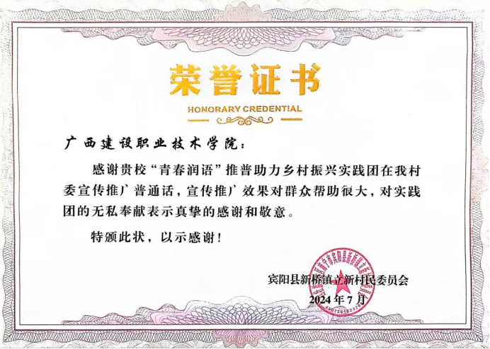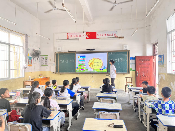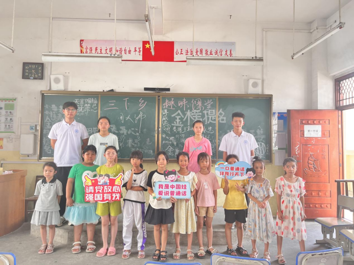 (信息工程学院 黄来珠 平磊)为加大国家通用语言文字推广力度,铸牢中华民族共同体意识,助力乡村振兴战略落地,学校“青春润语”推普助力乡村振兴实践团于2024年7月10日至14日到宾阳县立新村开展了“筑梦青春,挺膺担当”暑期“三下乡”社会实践活动。